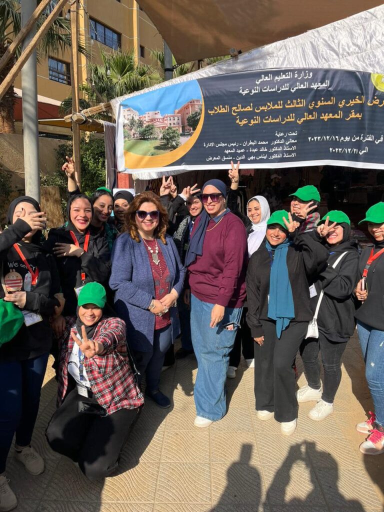 في اطار سعي المعهد لاقامة معارض ملابس لصالح الطلاب فقد تمت مشاركة رئيس قسم الارشاد السياحي أ.د/ ايناس بهي الدين في المعرض الخيري السنوي الثالث وبحضور عميد المعهد أ.د/ خالد عبده